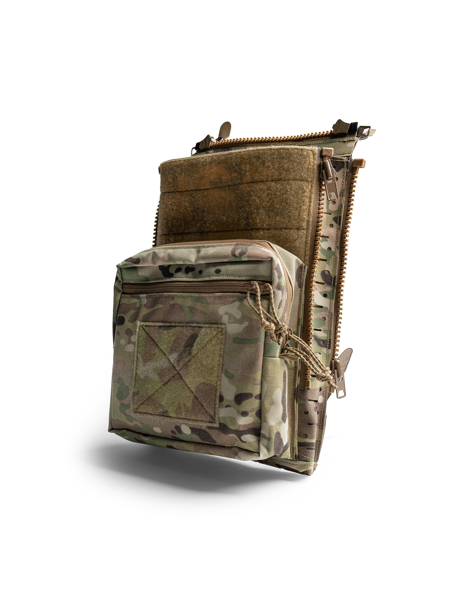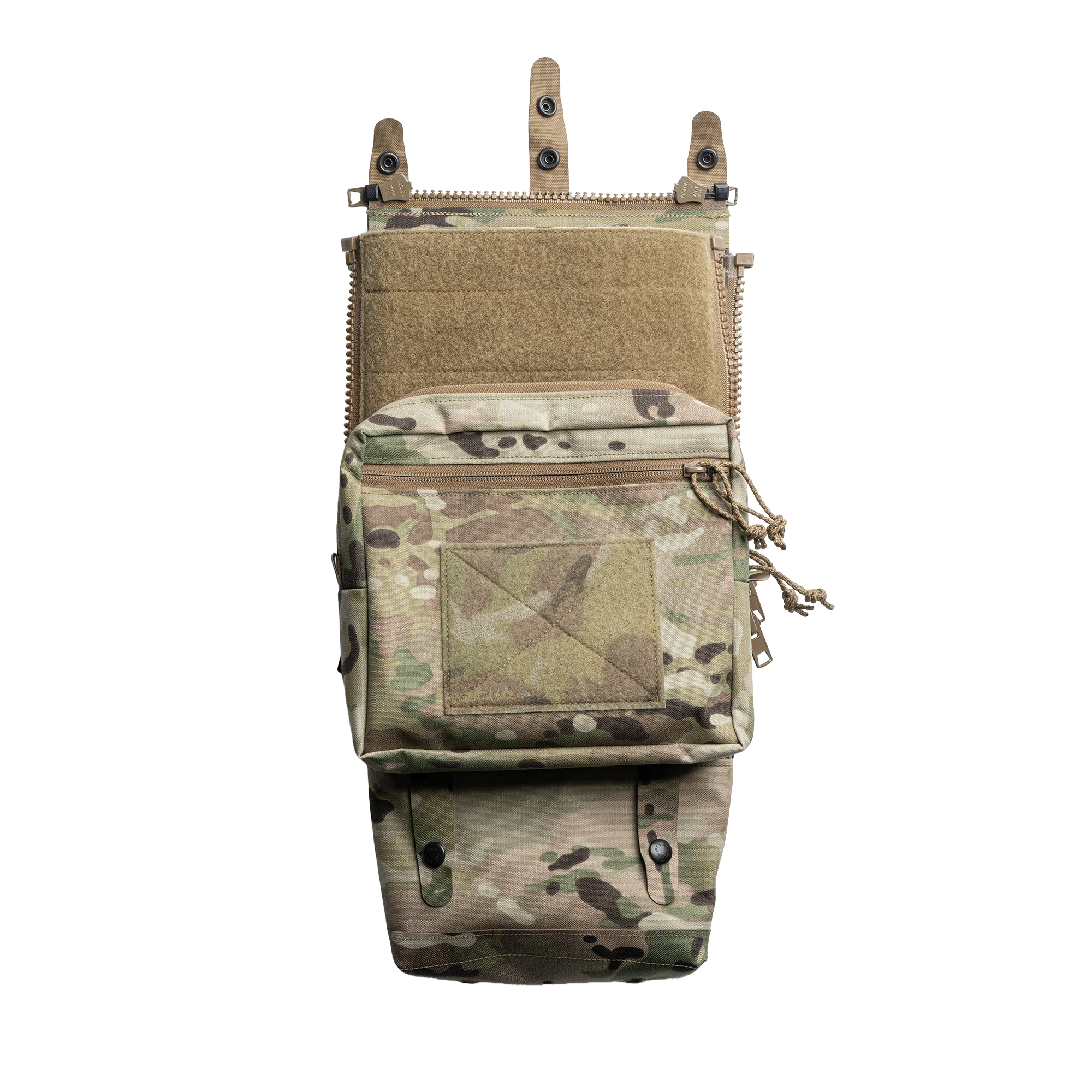 The Assault Back Panel Core Mk 2 attaches to your LV-120 Rear Plate Bag using a combination of our proprietary Quick Attachment Tab System and UCAS Standard #10 Zippers.